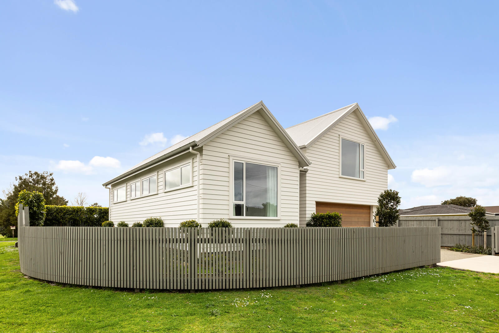 Landscaping, exposed aggregate driveway, and sleek fencing complete the home, delivering a modern coastal build that reflects the best of Whitianga living.